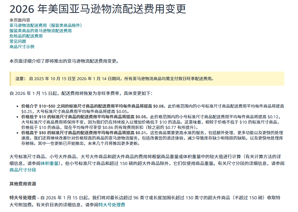 针对亚马逊刚刚发布的2026年费用变更细则,我把大家最关心的几个核心影响点重新梳理了一遍,大家可以对照自己的业务情况查看。
